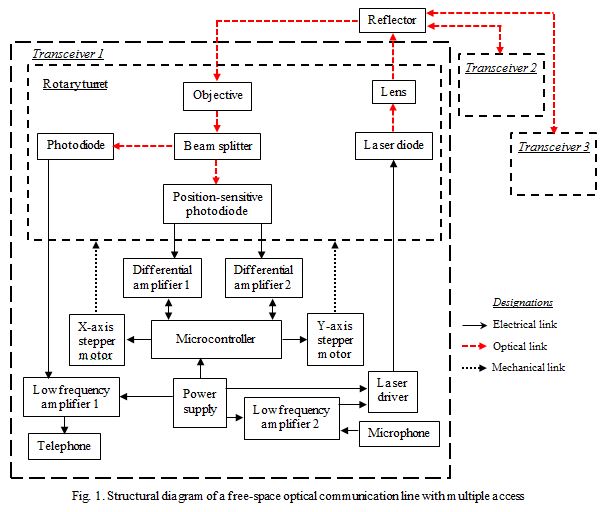 У статті розглянуто модель лінії вільно-просторового оптичного зв’язку між декількома близько розташованими точками на місцевості, які знаходяться поза зоною прямої видимості. Для швидкого розгортання ліній зв'язку з радіусом дії до сотень метрів будь-яка висока будівля, видима всім абонентам, може бути своєрідним ретранслятором оптичного сигналу. Порівняно з радіоканалами зв'язку оптична лінія зв'язку має вищу швидкість передачі інформації, нечутлива до електромагнітних перешкод і більш захищена від прослуховування.