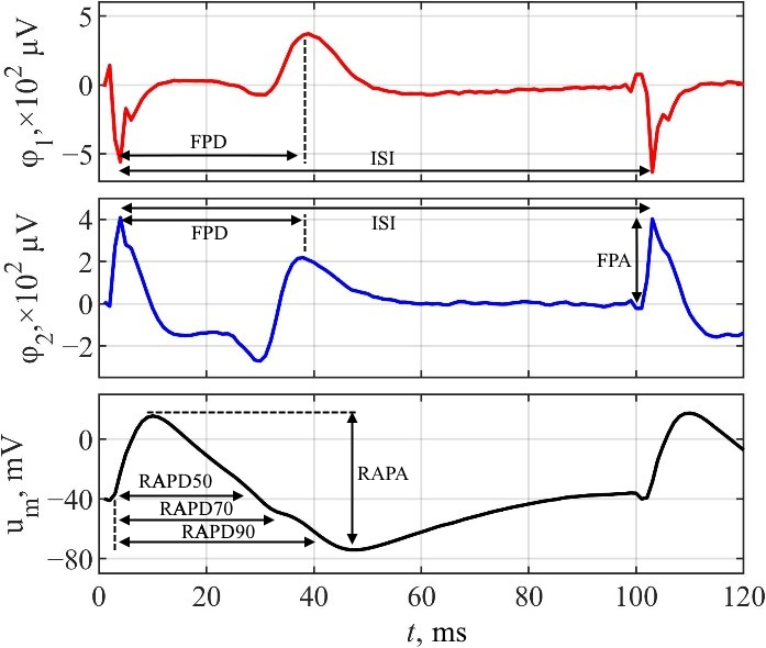 Системи з мікроелектродними решітками (МЕР) важливі для вимірювання позаклітинних потенціалів поля (ПП) клітин серця, що є важливим кроком в оцінці кардіотоксичності. Однак, без модифікації БЕР система здатна реєструвати лише потенціали поля. Це обмежує кількість параметрів для оцінки кардіотоксичності лише параметрами ПП, в той час як параметри потенціалу дії (ПД) залишаються невикористаними. Для вирішення цієї проблеми БЕР системи модифікують, щоб використовувати електро- або оптопорацію для реєстрації локальних позаклітинних потенціалів дії (ЛППД), що дозволяє отримувати сигнали з достовірною морфологію ПД. З іншого боку, існує альтернатива модифікації МЕР систем, що дозволяє уникнути стимуляції клітинної мембрани ⸺ математична реконструкція ПД.