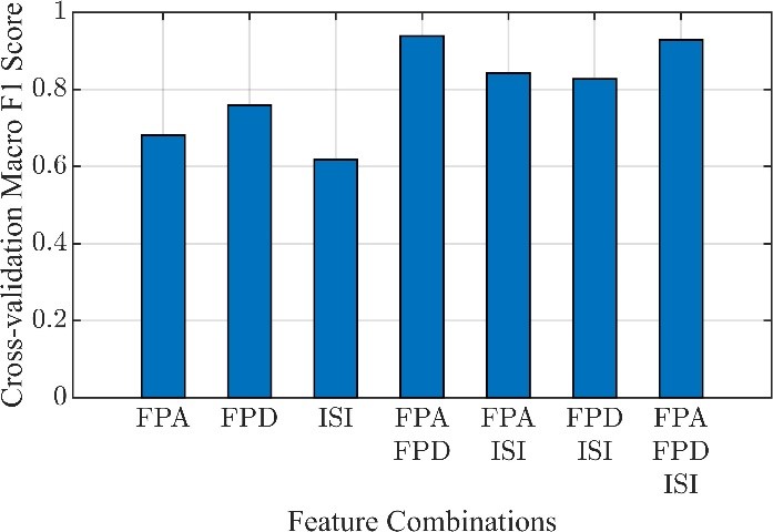 Класифікатор k-NN було натреновано на комбінаціях параметрів ПП та РПД. Перевірка моделей була проведена за допомогою п'ятикратної перехресної валідації та міжканальної валідації. Якість k-NN моделей була оцінена за допомогою таких метрик точності як частота помилок, макро влучність, макро повнота та макро F1-міра.