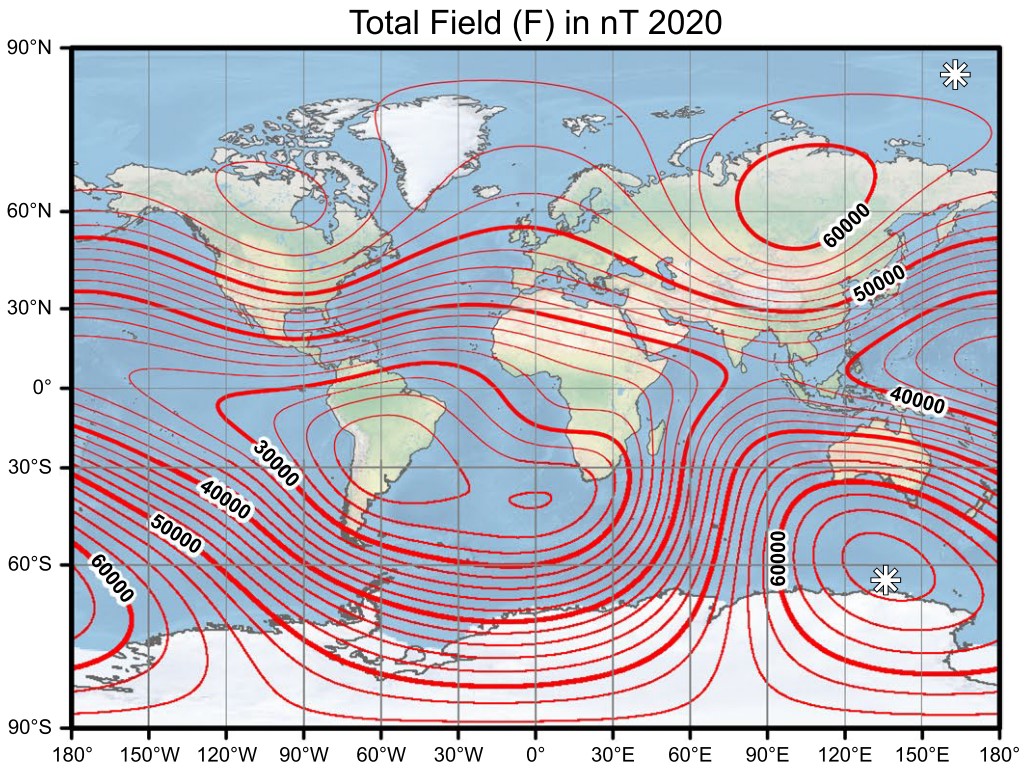 P. Alken et al., “International Geomagnetic Reference Field: the thirteenth generation,” Earth, Planets and Space, vol. 73, no. 1, p. 49, Dec. 2021, DOI: https://doi.org/10.1186/s40623-020-01288-x.